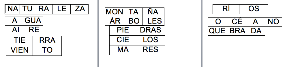 Después, se debía formar palabras relacionadas con la naturaleza al unir otras sílabas. Seguidamente, encontrar aquellas palabras formadas en la sopa de letras.