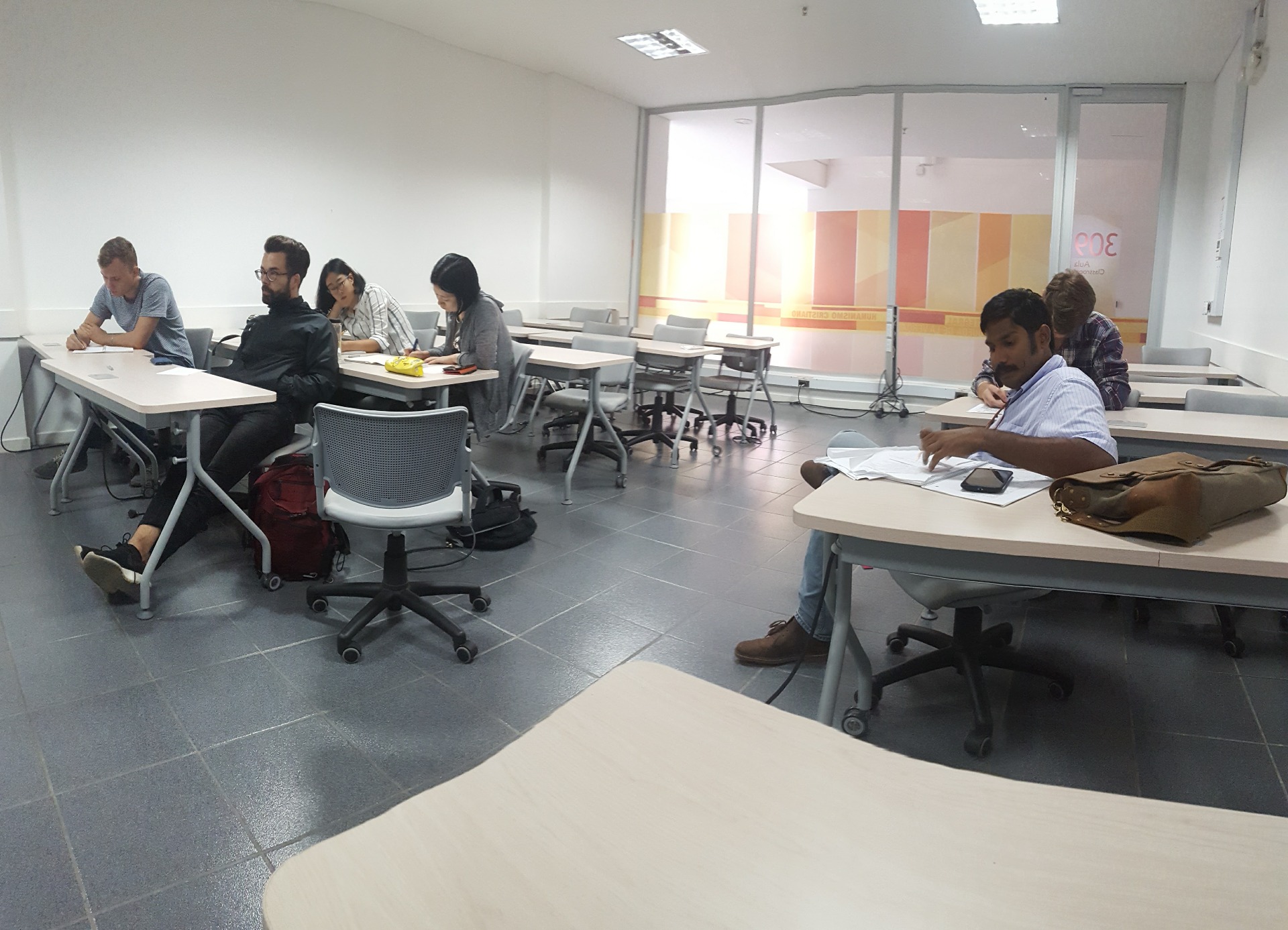 Este día en particular asistieron muchos extranjeros y desarrollamos la actividad del tesoro alfabético en parejas. Ellos debían encontrar una palabra en el aula por cada letra del abecedario.