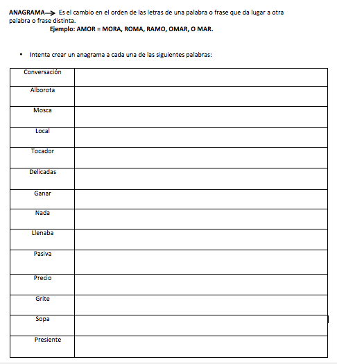 Se les explicó en qué consistía el anagrama y ellos pudieron evidenciar lo flexible que puede ser en el español, gracias a este ejercicio socializado, descubrieron muchas palabras y sus significados.