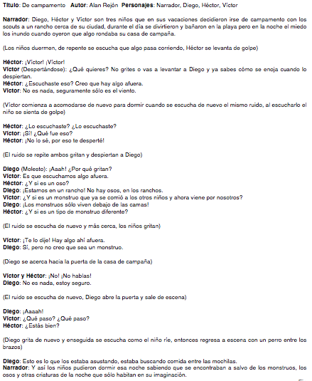 Nota: En la clase siguiente (Viernes 16 de septiembre) se les contaría la historia original.