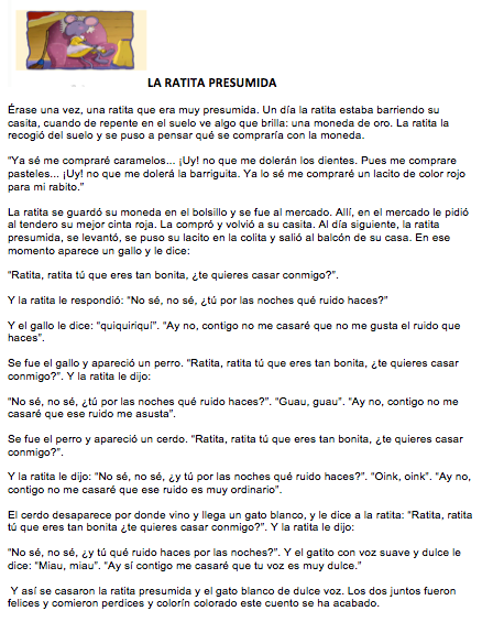Tema: Ejercicio anagrama, rompecabezas del cuento "la ratita presumida", obra de teatro "de campamento"