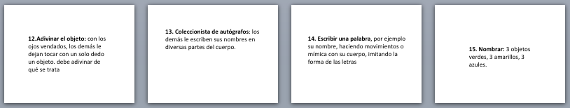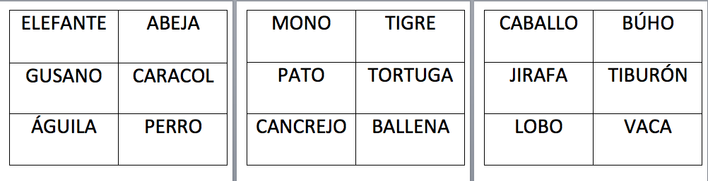 Cada persona tenía una de estas tarjetas con el nombre de uno de estos animales adherido a su pecho y estaba prohibido mirarlo, pues sus compañeros debían describir con características para que esta persona adivinara cual era el animal que tenía.