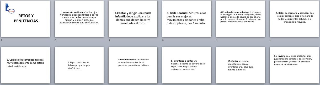 Si escogían la verdad debían escoger un papel de la lista o si escogían reto-penitencia debían seleccionar un número de la presentación: