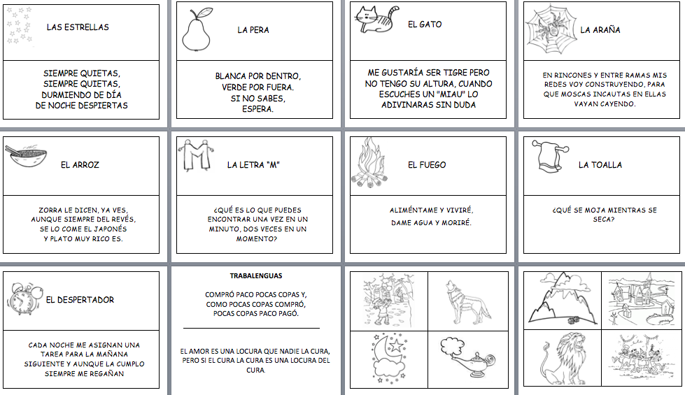 Tema: Acertijos, adivinanzas, trabalenguas e historia de imágenes.